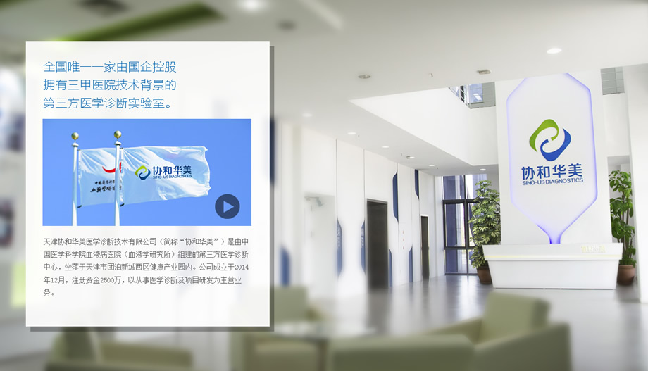 天津协和华美医学诊断技术有限公司(简称“协和华美”)是由中国医学科学院血液病医院(血液学研究所)组建的第三方医学诊断中心,坐落于天津市团泊新城西区健康产业园内。公司成立于2014年12月,注册资金2500万,以从事医学诊断及项目研发为主营业务。