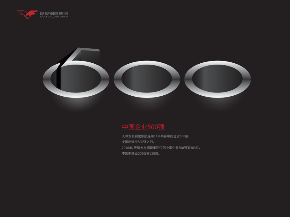 年产销千万吨级,全球规模最大的焊接钢管制造企业——天津友发钢管集团股份有限公司成立于2000年7月1日,总部座落于中国最大的钢管生产基地——天津大邱庄,是集:直缝焊接钢管、热镀锌钢管、内衬塑复合钢管、涂塑钢管、方矩型钢管、热镀锌方矩型钢管、螺旋钢管、高速护栏板等产品于一体的焊接钢管制造企业集团,拥有 “友发”和“正金元”两个品牌。目前已经形成了天津、唐山、邯郸三个生产基地,拥有8家钢管生产企业总计152条生产线,近万名员工,同时拥有2个国家级认可实验室,1个行业内唯一产学研技术研发机构——“天津市焊接钢管技术工程中心”。三大基地生产的产品先后销往北美洲、南美洲、欧盟、非洲、东南亚、中东、大洋洲和香港等66个国家和地区。2016年生产各类钢管突破1200万吨,如果把友发每个星期生产的钢管首尾连接,将会绕地球整整一圈。友发已经实现了连续11年产销量全国第一。连续11年跻身中国企业500强、中国制造业500强。